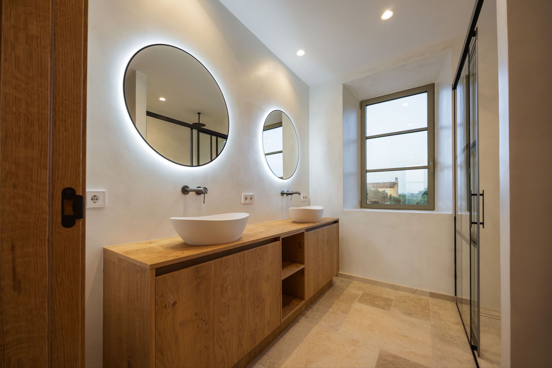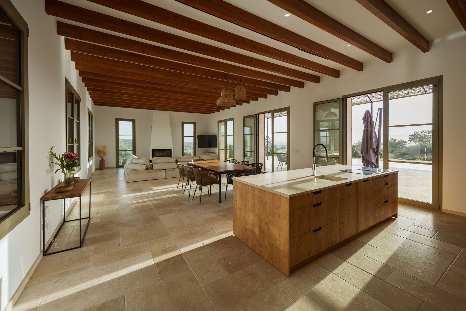 Fertiggestellt im Jahr 2024, verkörpert dieses außergewöhnliche Anwesen das Wesen des zeitgenössischen ländlichen Luxus auf Mallorca. Im exklusiven Viertel von Porreres gelegen, genießt die Immobilie absolute Privatsphäre auf einem großzügigen Grundstück von 14.206 m², mit erhöhten 180-Grad-Panoramablicken über die Landschaft der Balearen. Mit auffälliger avantgardistischer Architektur gestaltet, bietet die Residenz eine bebaute Fläche von über 1.000 m², die durch großzügige Proportionen, hohe Decken mit freiliegenden Balken und einen nahtlosen Dialog zwischen Innen- und Außenbereich definiert ist. Der Hauptwohnbereich entfaltet sich als beeindruckendes offenes Raumkonzept, das eine elegante Lounge, einen Essbereich und eine maßgeschneiderte Designerküche mit zentraler Insel kombiniert, alle eingerahmt von großen bodentiefen Fenstern, die das Haus mit natürlichem Licht durchfluten. Die Schlafbereiche umfassen vier luxuriöse Doppelzimmer, jedes mit eigenem begehbarem Kleiderschrank oder Einbauschränken und einem privaten en-suite Badezimmer, was Komfort und Privatsphäre für jeden Bewohner gewährleistet. Eine unabhängige Gästesuite mit eigenem Eingang, privater Lounge, Schlafzimmer und Badezimmer bietet einen eigenständigen Rückzugsort, ideal für die Bewirtung von Familie oder Freunden. Das weitläufige Kellergeschoss beherbergt eine geräumige Garage, Waschräume und Technikräume, die diskret die Funktionalität des Hauses unterstützen. Im Außenbereich wird das Anwesen durch professionell gestaltete Landschaftsgestaltung mit einheimischer mallorquinischer Vegetation bereichert, die sich harmonisch in das umliegende natürliche Terrain einfügt. Ein 62 m² großer Salzwasserpool genießt optimale Sonneneinstrahlung und ununterbrochene Ausblicke, während 177 m² Terrassen und Veranden, einschließlich einer eleganten Pergola, einladende Räume für Mahlzeiten im Freien und Entspannung schaffen. Nachhaltigkeit und Komfort sind nahtlos integriert durch ein hochmodernes Aerothermiesystem, Fußbodenheizung im gesamten Haus, Kanal-Klimaanlage und einen traditionellen Holzofen. Die Immobilie ist dank ihres legalen privaten Brunnens vollständig autark in der Wasserversorgung und ist mit Naturstein, leistungsstarken Einfassungen und handgefertigten Deckendetails auf höchstem Niveau fertiggestellt — eine seltene Fusion aus raffiniertem Design, moderner Effizienz und zeitlosem mediterranem Charakter. Haftungsausschluss – Die Informationen zu dieser Immobilie dienen ausschließlich allgemeinen Informationszwecken. Obwohl wir uns um Genauigkeit bemühen, werden einige Details von Dritten bereitgestellt. Wir übernehmen keine Garantie für die Richtigkeit oder Vollständigkeit dieser Informationen und haften nicht für etwaige Fehler. Wir empfehlen allen interessierten Parteien, sich unabhängig rechtlich beraten zu lassen und ihre eigenen Überprüfungen durchzuführen.