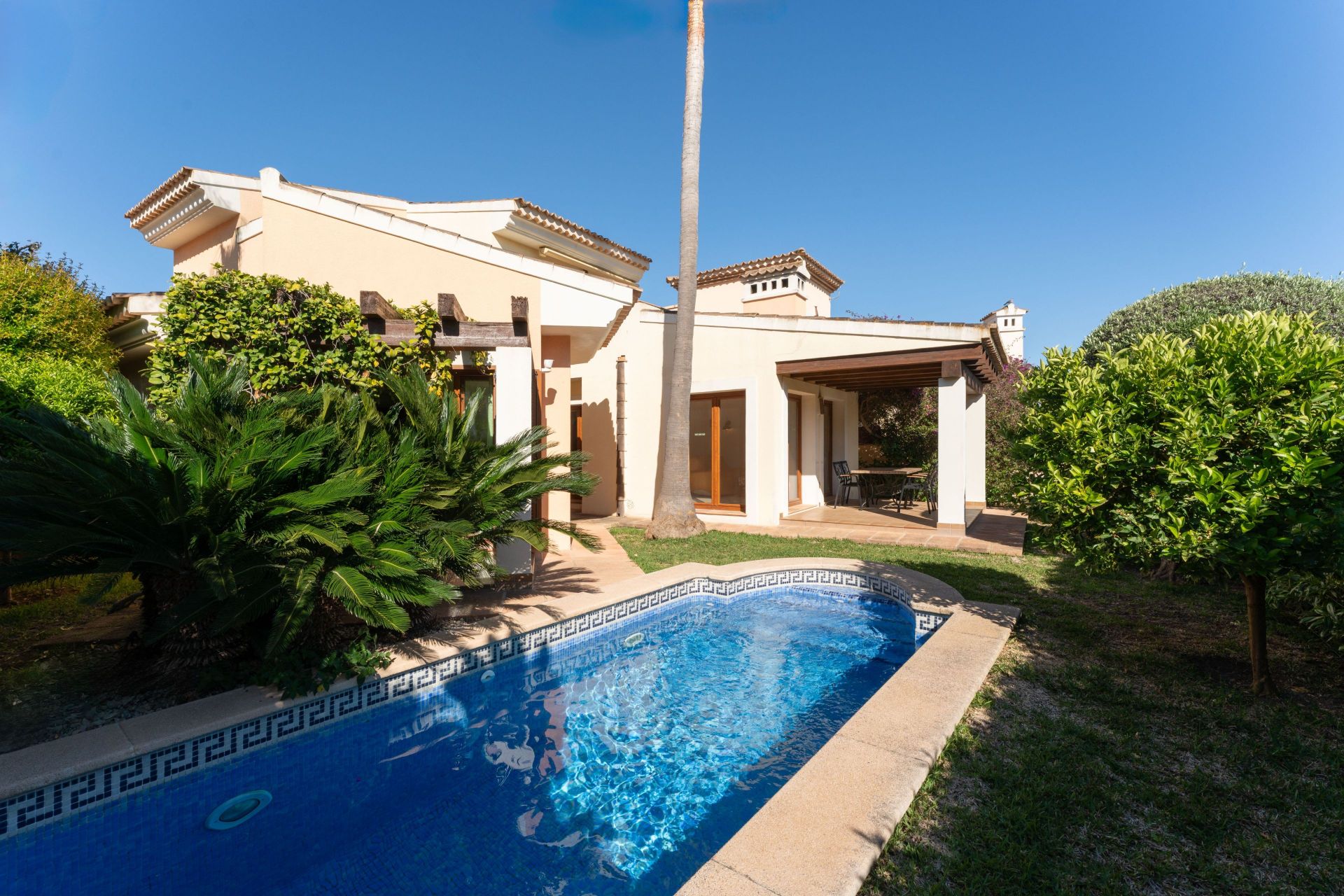 Golfvilla in erster Reihe mit privatem Pool in Nova Santa Ponsa Diese elegante Golfvilla in erster Reihe befindet sich in der prestigeträchtigen Gegend von Nova Santa Ponsa, Calviá, und bietet einen außergewöhnlichen Lebensstil in der exklusiven Gemeinschaft „Marina Golf“. Exklusiv zum Verkauf bei Imperial Properties, genießt das Haus eine ruhige, sonnige Südwestlage mit atemberaubendem Blick auf die üppigen Fairways und die umliegende Natur. Auf einem 355 m² großen Grundstück gelegen, verfügt die Villa über eine bebaute Fläche von 172 m² (119 m² netto) und bietet 3 geräumige Schlafzimmer, 3 Badezimmer und ein Gäste-WC. Das Innere ist komfortabel und stilvoll gestaltet und umfasst einen gemütlichen Wohnbereich mit Kamin, eine Küche und einen nahtlosen Zugang zu einem wunderschön gepflegten privaten Garten mit mehreren Obstbäumen. Das Highlight des Außenbereichs ist der private 21 m² große Pool, ideal zum Entspannen unter der mediterranen Sonne. Ein Grillbereich erhöht die Attraktivität des Hauses für das Leben im Freien und geselliges Beisammensein. Darüber hinaus bietet die Immobilie eine Garage, einen offenen Parkplatz und Zugang zu einem gepflegten Gemeinschaftspool. Wichtige Merkmale: Klimaanlage Kamin Private und Gemeinschaftspools Garage plus zusätzlicher Parkplatz (insgesamt bis zu 3 Autos) Südwestlage, die den ganzen Tag Sonne garantiert Golfposition in erster Reihe mit Panoramablick ins Grüne 2008 erbaut, gut gepflegt und bezugsfertig Diese Villa ist ideal für Golf- und Naturliebhaber, die Ruhe schätzen, aber dennoch in der Nähe des Meeres, schöner Strände, Port Adriano, des Yachthafens von Santa Ponsa und einer internationalen Schule sein möchten, die alle nur eine kurze Autofahrt entfernt sind. Verpassen Sie nicht diese seltene Gelegenheit, eine Golfimmobilie in erster Reihe in einem der exklusivsten Enklaven Mallorcas zu besitzen. Haftungsausschluss – Die Informationen zu dieser Immobilie dienen ausschließlich allgemeinen Informationszwecken. Obwohl wir uns um Genauigkeit bemühen, werden einige Details von Dritten bereitgestellt. Wir übernehmen keine Garantie für die Richtigkeit oder Vollständigkeit dieser Informationen und haften nicht für etwaige Fehler. Wir empfehlen allen interessierten Parteien, sich unabhängig rechtlich beraten zu lassen und ihre eigenen Überprüfungen durchzuführen.