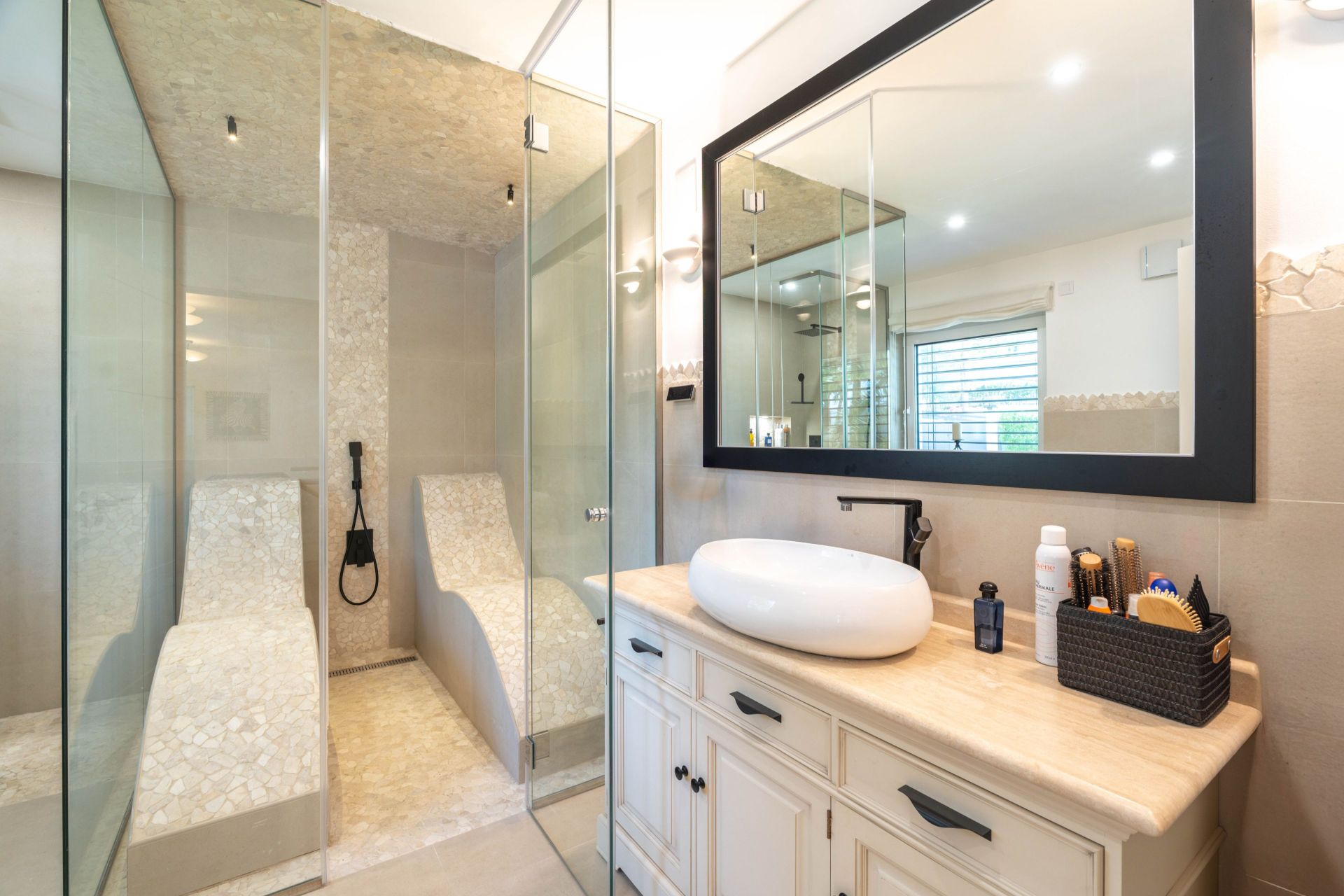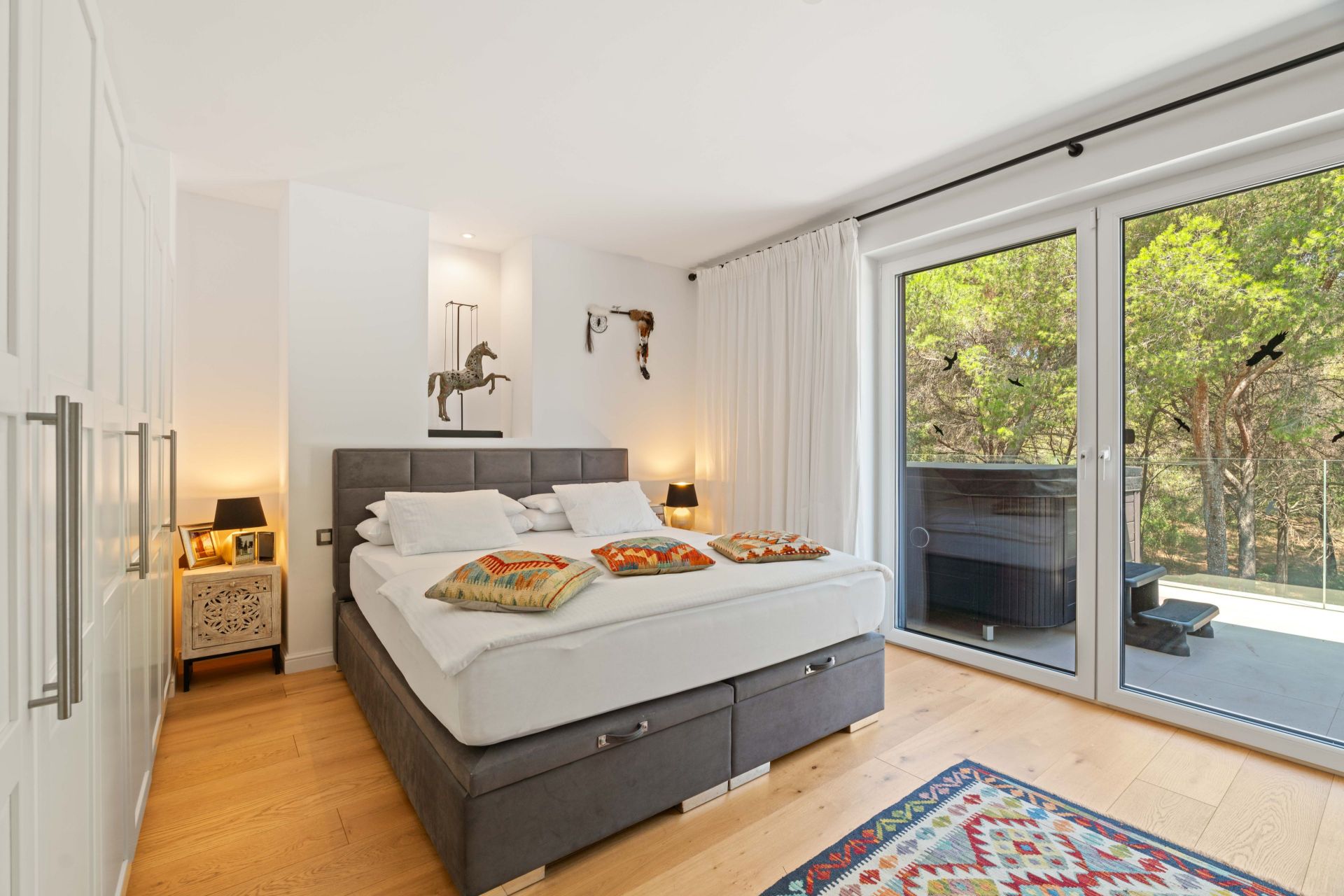 Verstecktes Juwel in Costa de la Calma / Santa Ponsa: Ein ruhiges Familienparadies Entdecken Sie die perfekte Balance aus Luxus und Komfort in dieser hochwertigen, energieeffizienten Villa im ruhigen Gebiet von Costa de la Calma/Santa Ponsa. Diese versteckte Perle ist für das ganzjährige Familienleben konzipiert und bietet zahlreiche Annehmlichkeiten, die jeden Tag wie einen Kurzurlaub erscheinen lassen. - Geräumiges Wohnen: Mit einem Grundstück von 1.290 m², 345 m² Wohnfläche und 450 m² bebauter Fläche über drei Ebenen bietet diese Villa Raum zum Wachsen und Gedeihen. - Durchdachtes Design: Genießen Sie 5 Schlafzimmer, 2 Wohnzimmer und eine Vielzahl von Innen- und Außenbereichen, die auf Komfort und Entspannung ausgelegt sind. - Outdoor-Paradies: Das Anwesen verfügt über üppige Rasenflächen, einen Obstgarten und direkten Zugang zum Wald, ideal für ruhige Spaziergänge oder Familienabenteuer. Luxus trifft Komfort - Wellness & Entspannung: Gönnen Sie sich die Dampfsauna, den Jacuzzi und einen funkelnden Salzwasserpool für ultimative Entspannung. - Unterhaltung im Freien: Bewirten Sie Freunde und Familie mit der Sommerküche im Freien am Pool. - Hohe Energieeffizienz: Dreifach verglaste Fenster (UV 87) und moderne Systeme sorgen für ein komfortables, umweltfreundliches Zuhause. - Praktische Annehmlichkeiten: Ein Fitnessraum, Zentralheizung und Klimaanlage machen das Leben mühelos. Praktische Extras - Eine sichere Garage für 2 Autos und Videoüberwachung bieten Sicherheit und Komfort. - Der einfache Zugang zur Autobahn gewährleistet schnelle Verbindungen nach Santa Ponsa und darüber hinaus. Der Lebensstil, den Sie verdienen In einer ruhigen, friedlichen Lage gelegen, ist diese Villa ideal für Familien, die einen ruhigen Lebensstil suchen, ohne auf moderne Annehmlichkeiten zu verzichten. Es ist ein wahrer Rückzugsort, der alles bietet, von der Natur vor der Haustür bis hin zu luxuriösen Räumen für Entspannung und Unterhaltung. Verpassen Sie nicht die Gelegenheit, dieses Stück Paradies Ihr Zuhause zu nennen. Kontaktieren Sie uns für weitere Details oder um eine Besichtigung zu vereinbaren! Haftungsausschluss – Die Informationen zu dieser Immobilie dienen ausschließlich allgemeinen Informationszwecken. Obwohl wir uns um Genauigkeit bemühen, werden einige Details von Dritten bereitgestellt. Wir übernehmen keine Garantie für die Richtigkeit oder Vollständigkeit dieser Informationen und haften nicht für etwaige Fehler. Wir empfehlen allen interessierten Parteien, sich unabhängig rechtlich beraten zu lassen und ihre eigenen Überprüfungen durchzuführen.